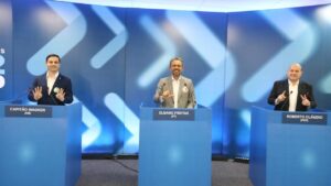Os três candidatos mais competitivos ao Governo do Ceará participaram de um encontro, nesta segunda-feira (12), durante novo debate eleitoral. A discussão, promovida pelo Grupo de Comunicação O Povo, ficou marcada por ataques entre os postulantes, com trocas de críticas e acusações entre Capitão Wagner (União Brasil), Elmano de Freitas (PT) e Roberto Cláudio (PDT).