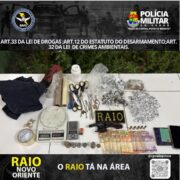 Dentro do imóvel, também foram encontradas balanças de precisão, cocaína e diversos materiais utilizados no tráfico, próximos à janela indicada na denúncia. O suspeito afirmou que teria trazido a droga do Piauí e adquirido o galo em uma localidade do interior, não informando a origem da arma.